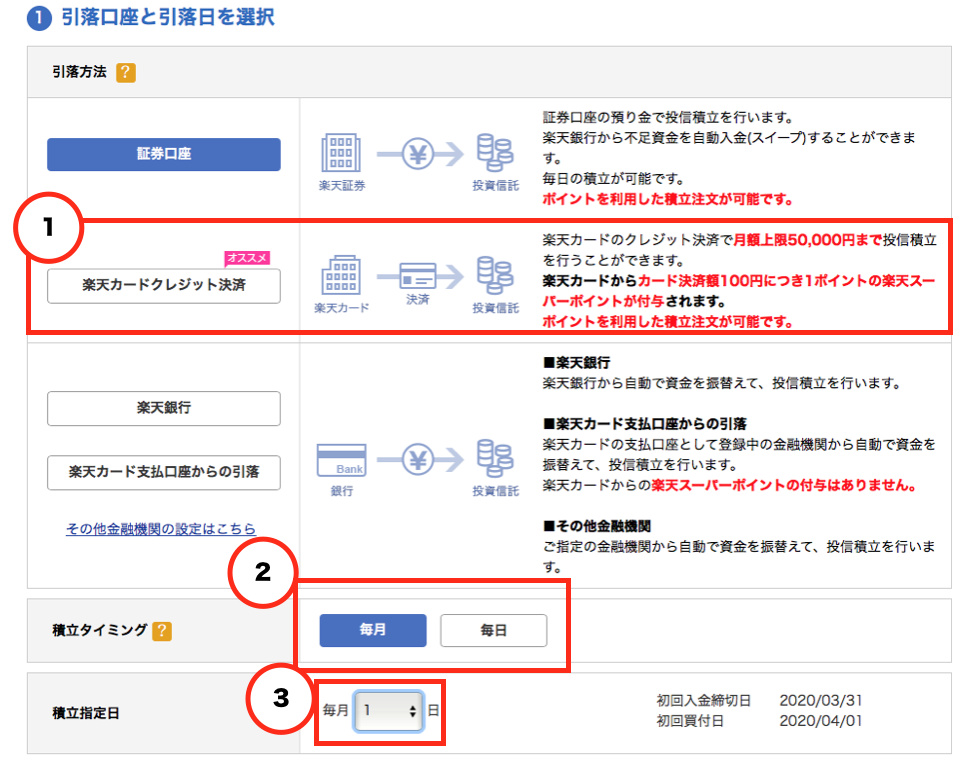 楽天カード決済の利用で積立投資の購入額を1%上げる方法。楽天スーパーポイントが貯まります。