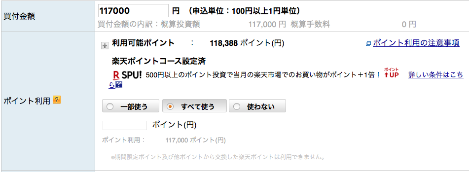 楽天ポイント投資で117,000円を「eMAXIS Slim 米国株式(S&P500)」に追加投資しました。